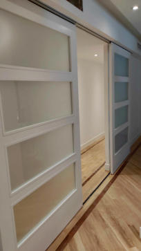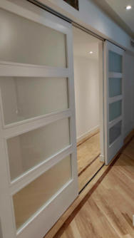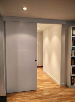 lacados y en distintos tipos de madera (roble, haya, sapelly, pino, cerezo…). Instalamos puertas correderas