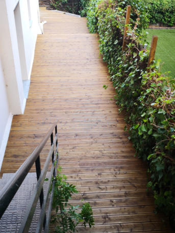 También colocamos tarima de ipé y pino tratado en autoclave.