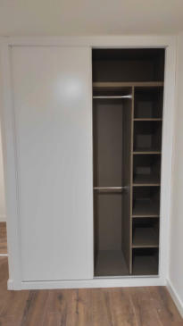 La terminación de los frentes de armario puede realizarse en puerta corredera o abatible con distintos